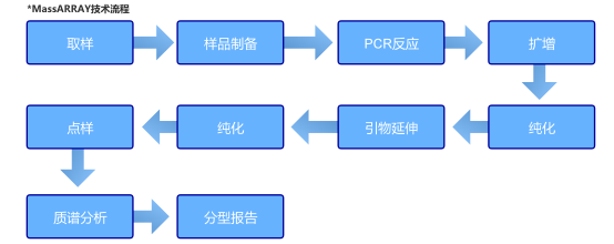 单核苷酸多态性(SNP,Single Nucleotide Polymorphism): 是指在基因组水平上单个核苷酸变异所引起的DNA序列多态性。Sequenom MassARRAY® 平台利用SNP位点两个等位基因之间的分子量差异来进行检测。基本原理为基质辅助激光解吸电离飞行时间质谱 (MALDI-TOF MS) 技术。